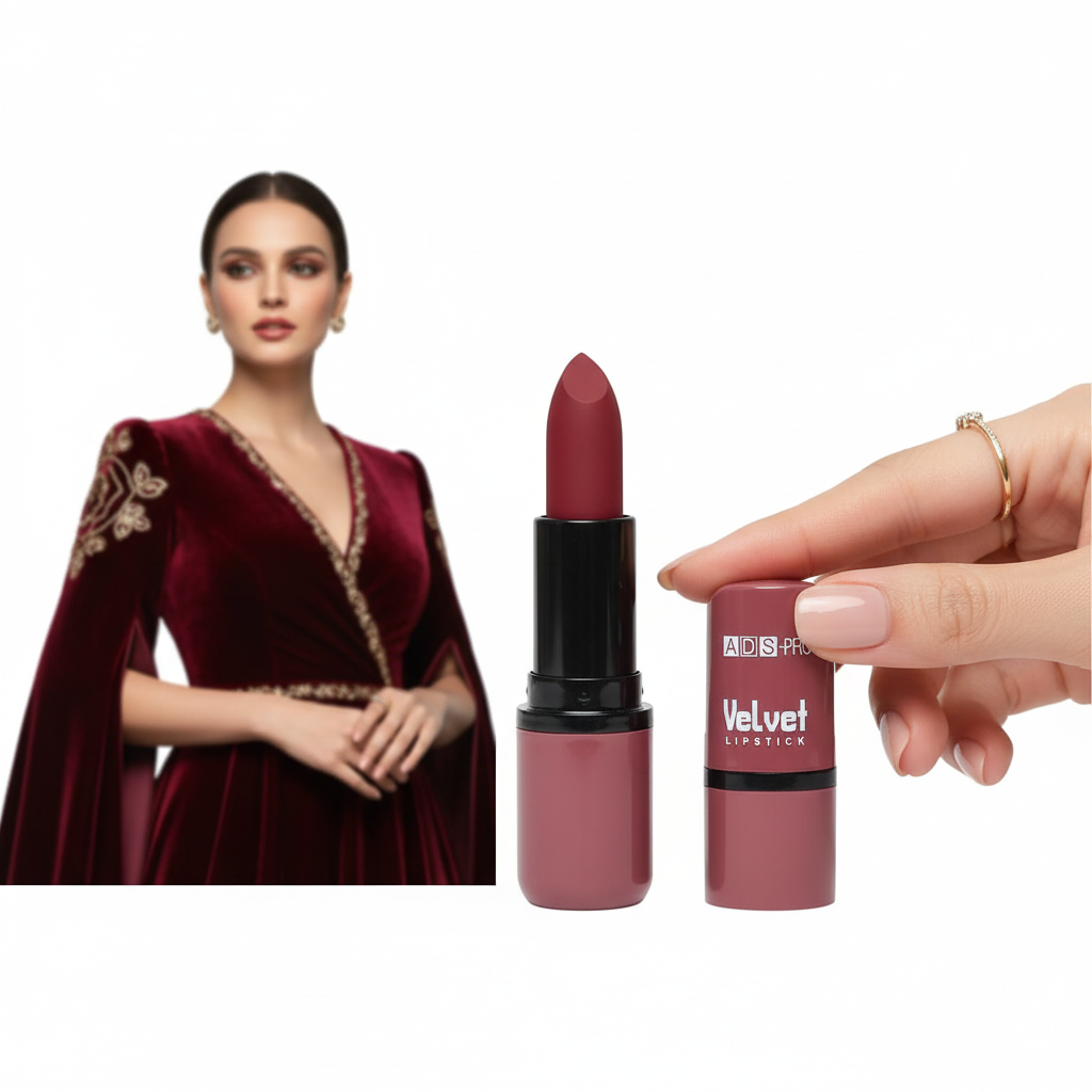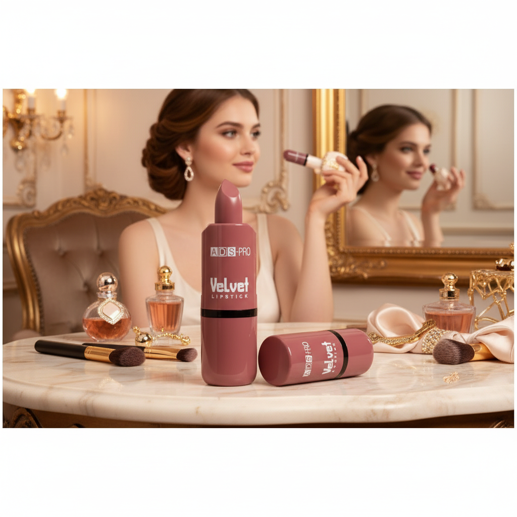 ADS-PRO Velvet Lipstick delivers rich color with a soft, smooth velvet finish. Lightweight, creamy texture glides easily on lips and gives a classy matte look suitable for daily wear and special occasions.
