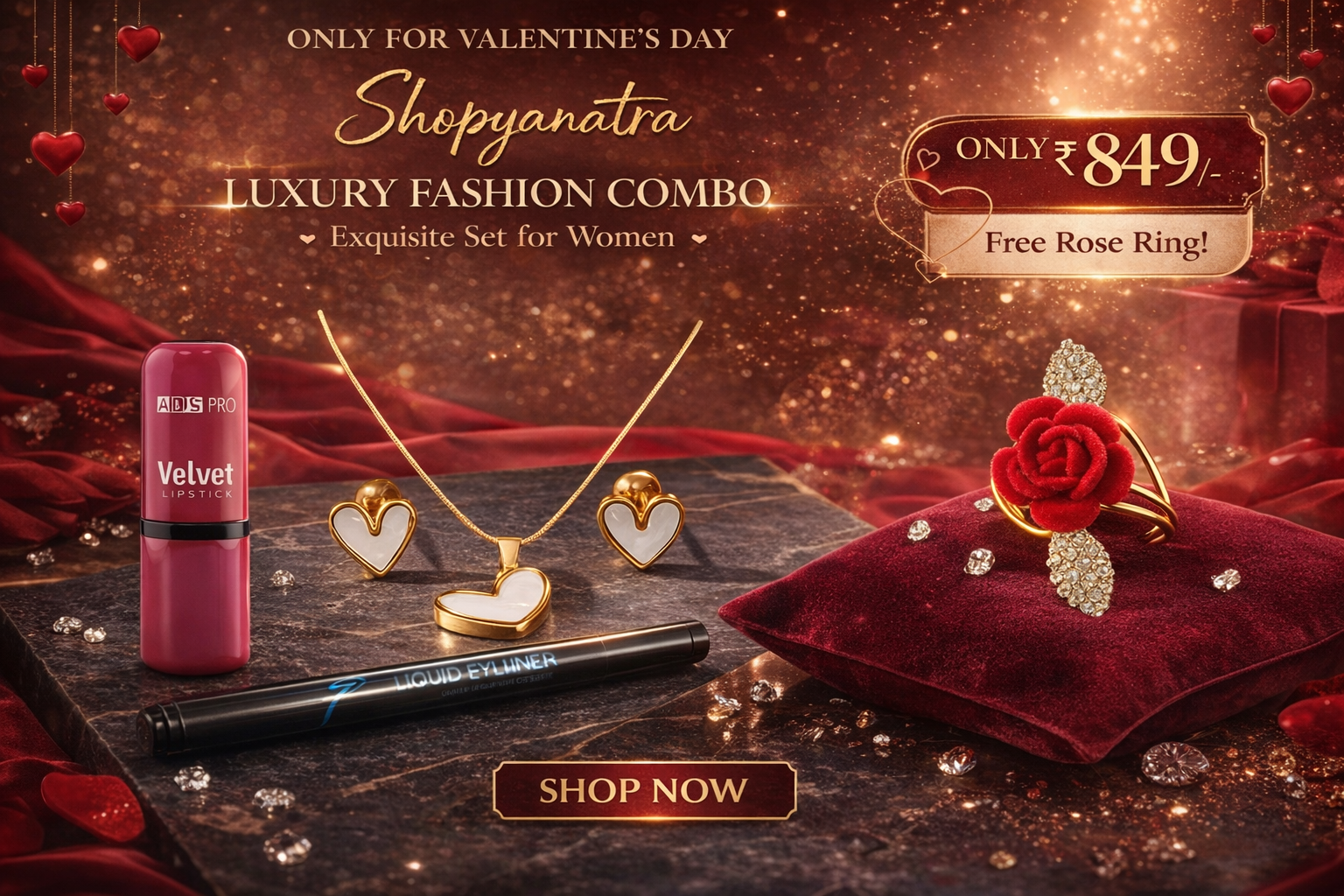 Celebrate love and elegance with the Shopyanatra Valentine’s Luxury Beauty & Jewelry Combo for Women. This thoughtfully curated Valentine combo for women brings together beauty essentials and timeless jewelry, making it a perfect Valentine gift for girlfriend or wife.